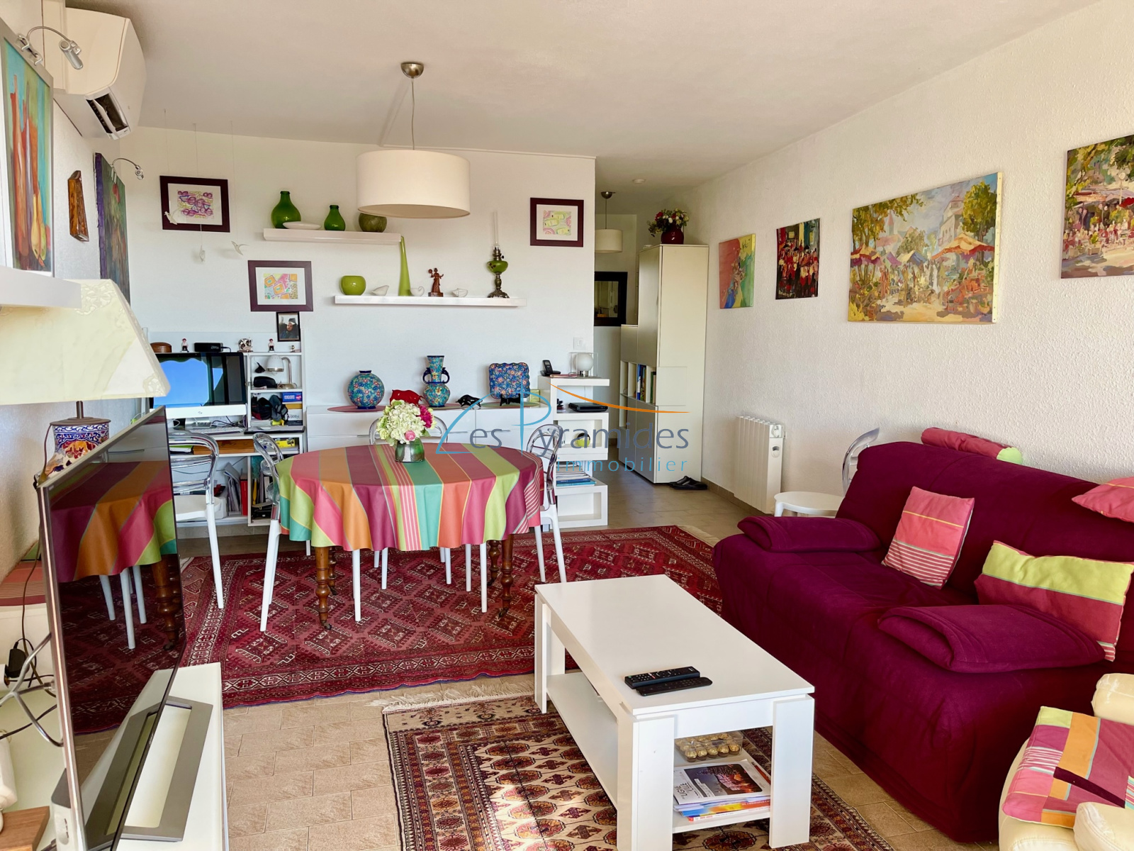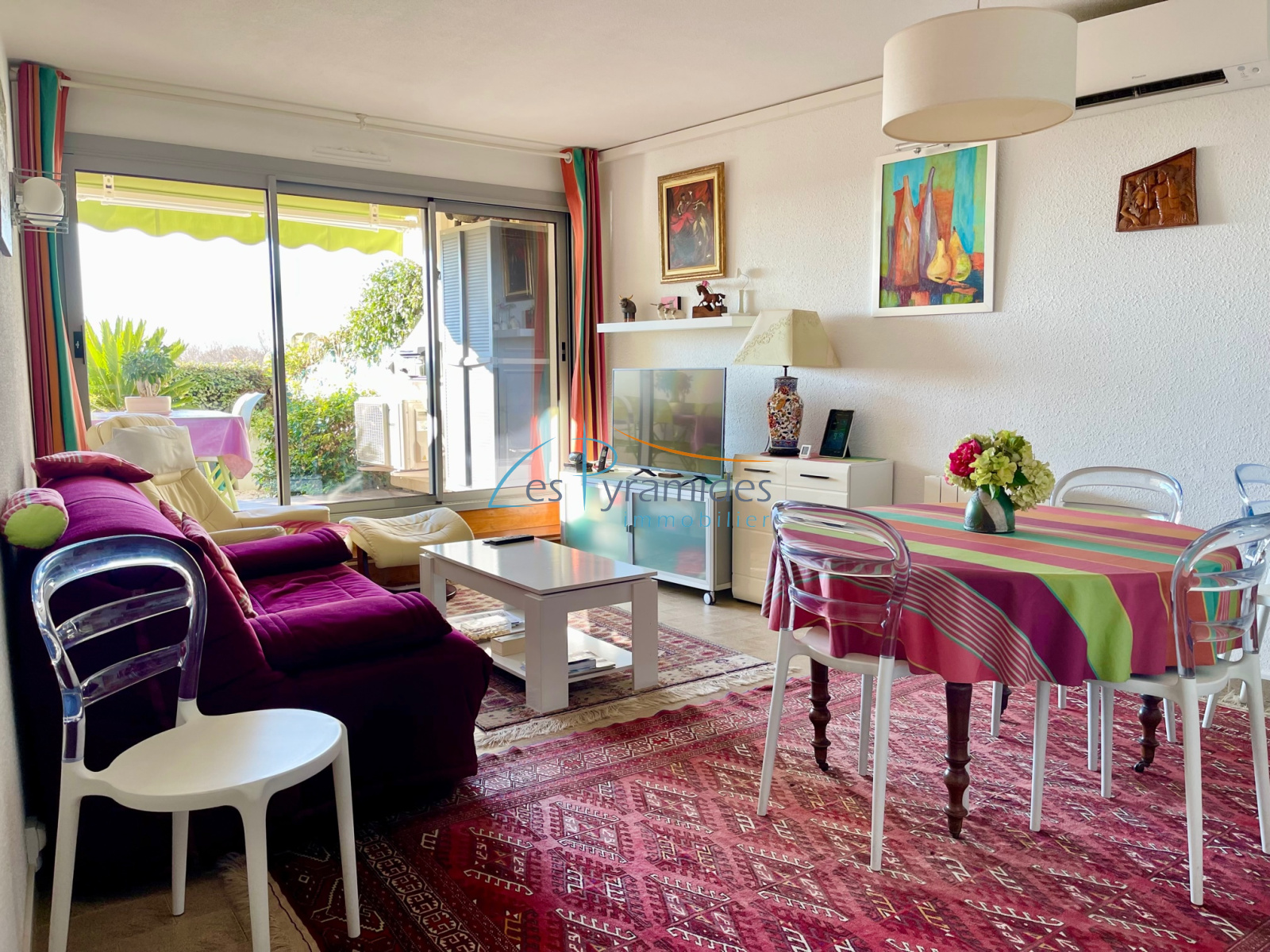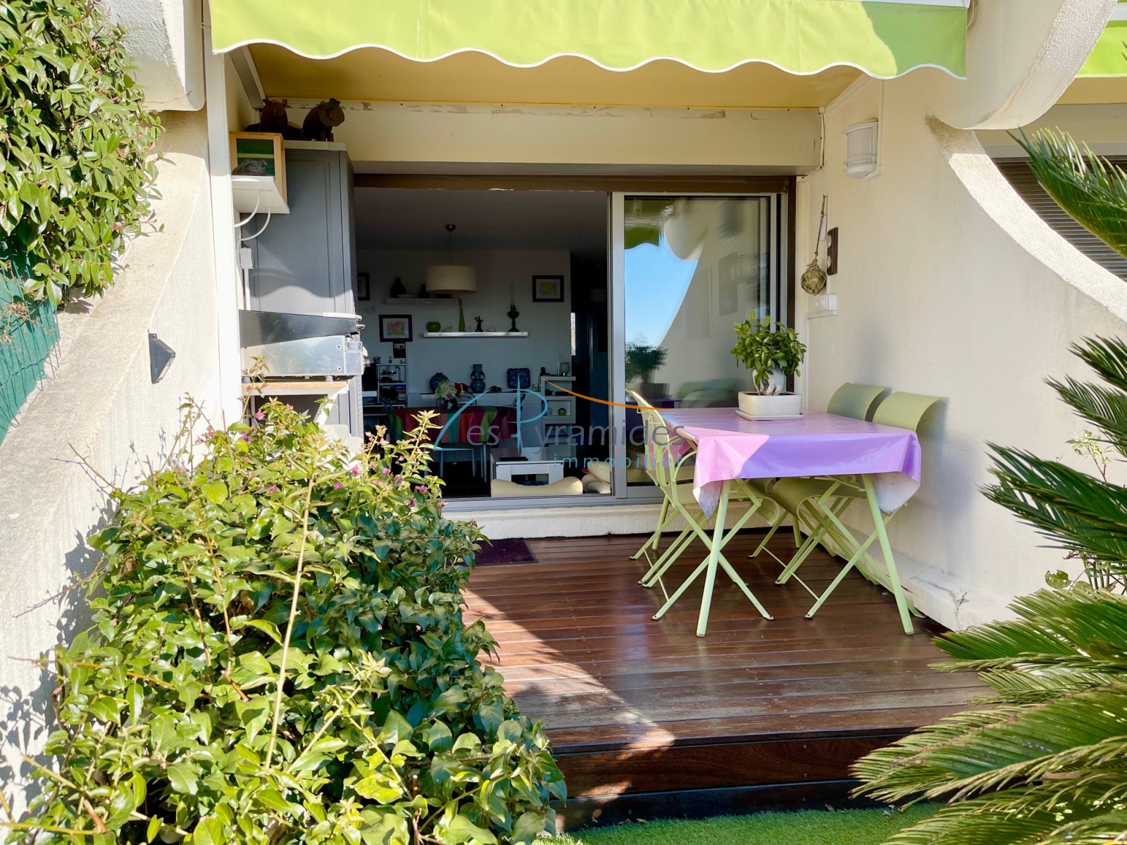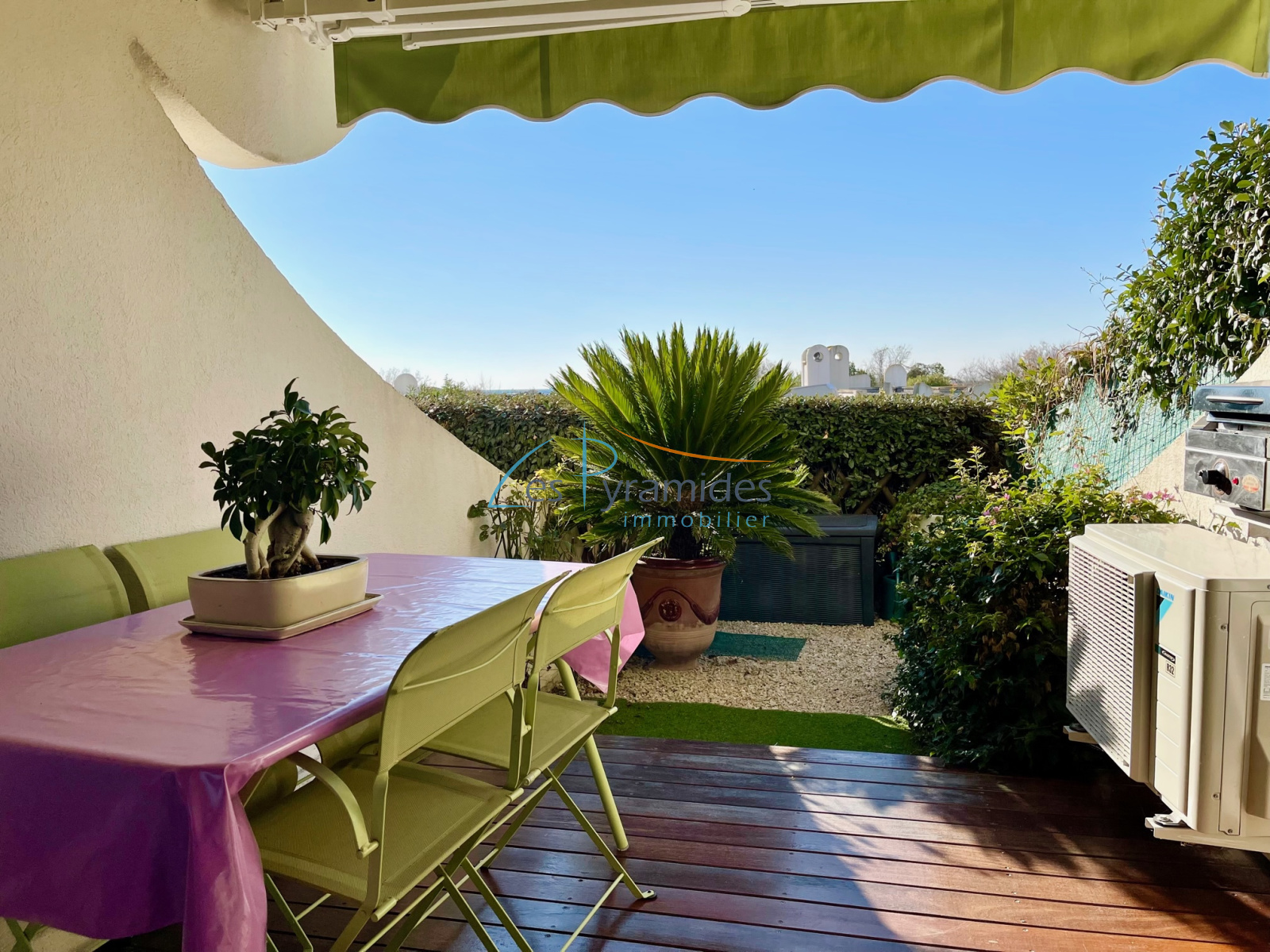 VENDU : 1ÈRE LIGNE, Idéalement situé au début du quartier du couchant, appartement traversant de 2 pièces principales de 43 m2 Loi Carrez bénéficiant d'une belle terrasse ensoleillée de 14 m2. Double vitrage, volets roulants électriques, climatisation réversible, toilettes séparés. A proximité des commerces, de la plage et du port, cet appartement est vendu avec un GARAGE de 15 m2 en sous-sol.